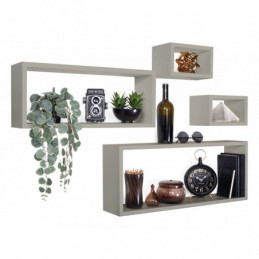 Tipologia: set 4 mensole/pensili da parete Dimensioni: 1) 75 × 30 × P 15,5 cm; 2) 60 × 25 × P 15,5 cm; 3–4) 25 × 15 × P 15,5 cm Materiale: fibra di legno con finitura rivestita Finitura/colore: Rovere Grigio Nuovo Spessore pannelli: 18 mm Fissaggio: a scomparsa (tasselli non inclusi; consigliati 4 kit) Portata massima: 10 kg per mensola Stato consegna:...