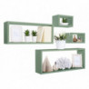 Set 4 Mensole da Muro, Pensile Bagno, Mensola Parete, Scaffale Parete, verde Acqua Marina, 75x30 p15,5 cm, 60x25 p15,5 cm e 2 da 25x15 p15,5 cm - Merlino