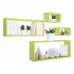 Set 4 Mensole da Muro, Pensile Bagno, Mensola Parete, Scaffale Parete, Verde, 75x30 p15,5 cm, 60x25 p15,5 cm e 2 da 25x15 p15,5 cm - Merlino