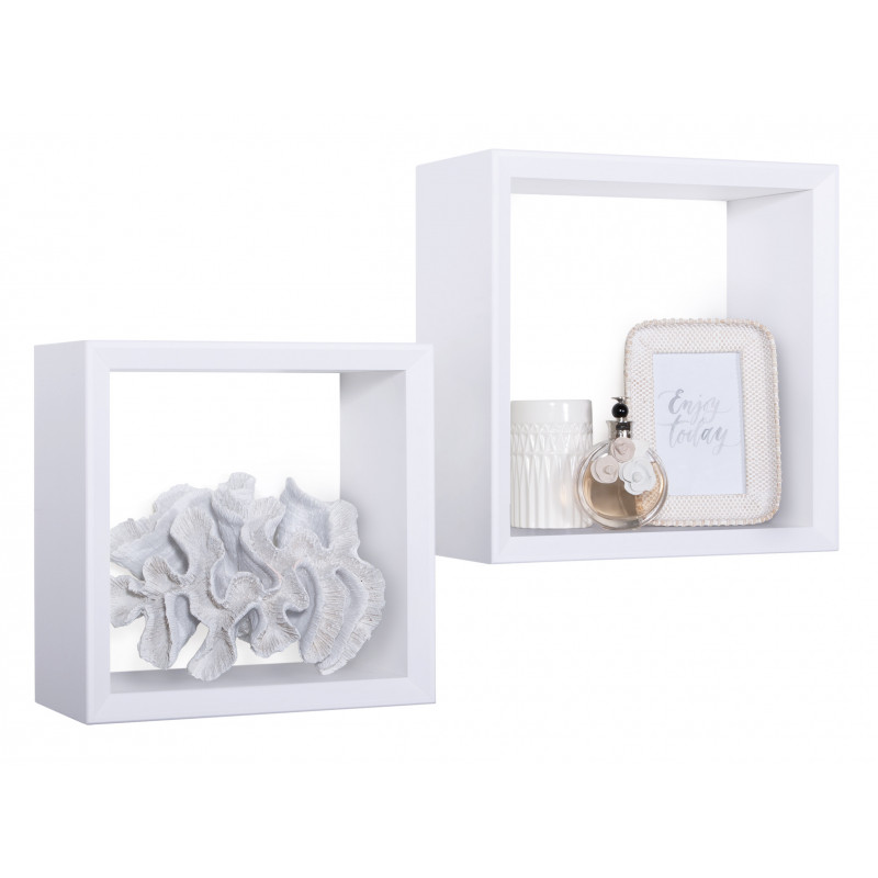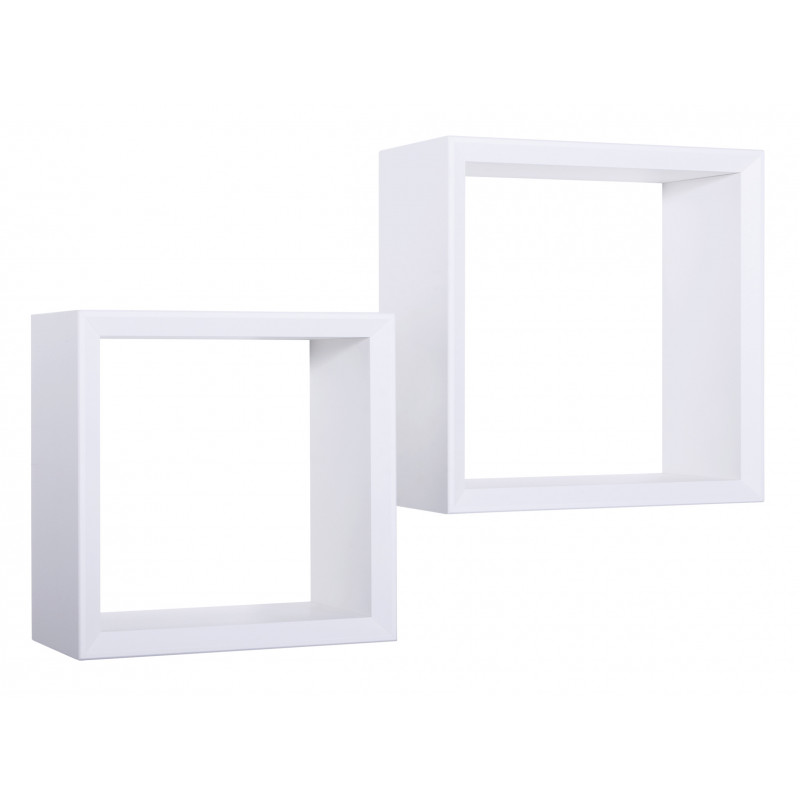 Set di 2 Mensole da Muro, Cubi Arredo, Mensole Cubo, Cubi da Parete, Cubi Portaoggetti, Bianco 35x35 p15,5 cm, e 30x30 p15,5 cm - Ginevra