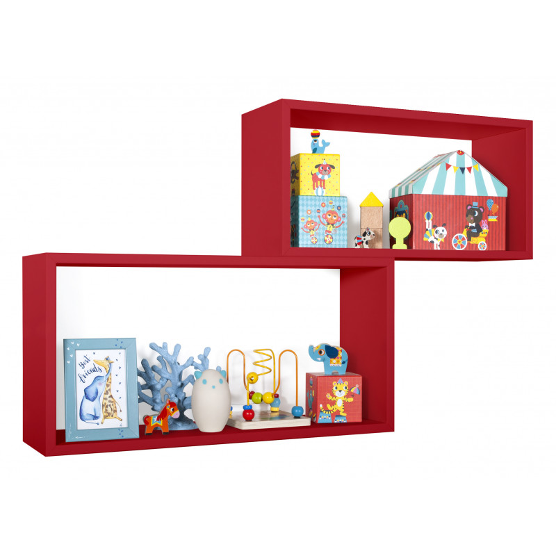 Set di 2 Mensole da Muro, Pensile Bagno, Mensola da Parete, Scaffale da Parete, Rosso, 70x35 p20 cm e 60x30 p20 cm - Bis Rettangolo Bislungo