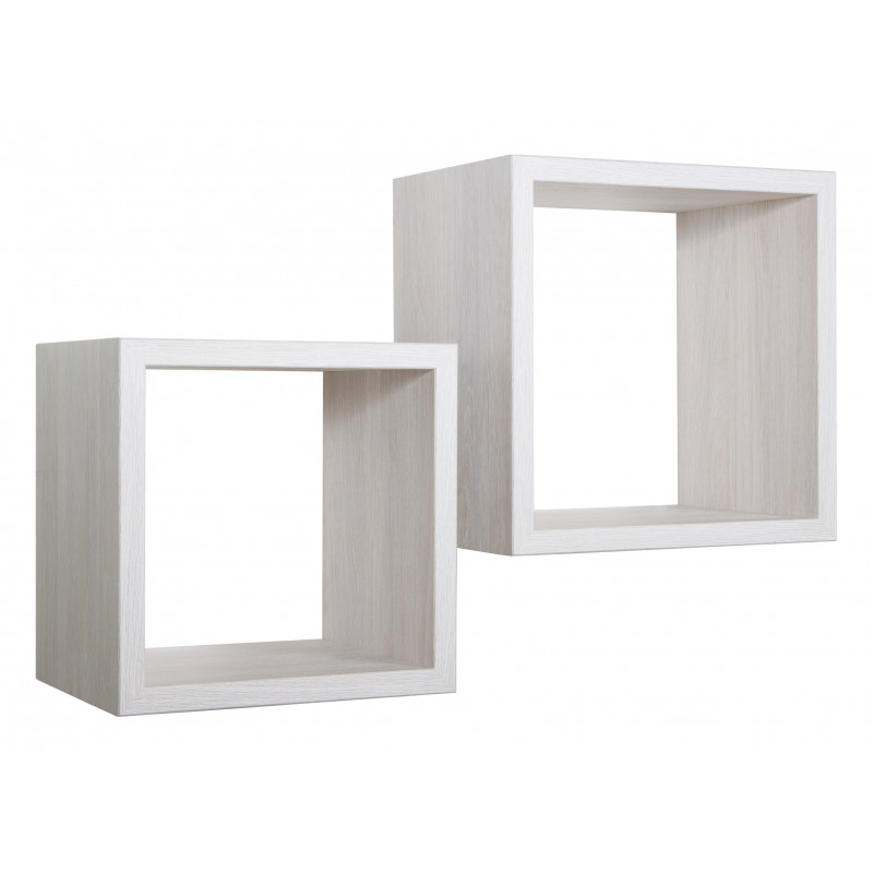 Set di 2 Mensole Maxi da Muro, Cubi Arredo, Mensole Cubo, Cubi da Parete, Rovere Sbiancato, 35x35 p23,7 cm e 31x31 p23,7 cm - Q-Bis