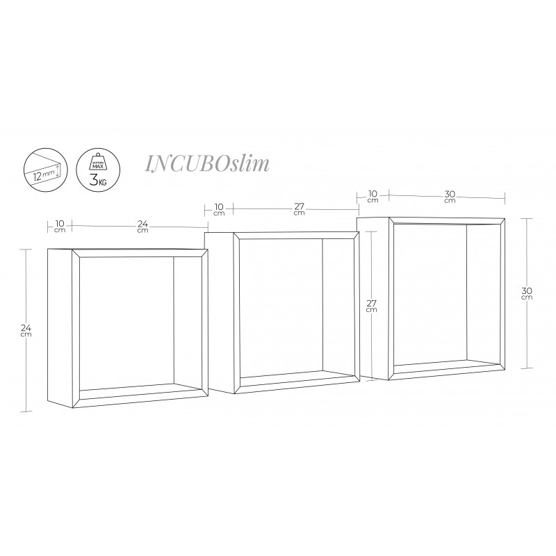 Tipologia: set 3 mensole cubo da parete (profilo slim)