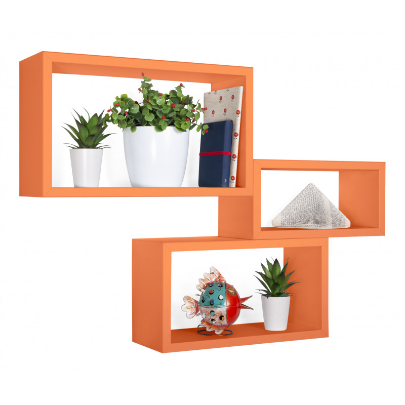 Set di 3 Mensole da Muro, Libreria Sospesa, Libreria Parete, Scaffale Parete, Arancione, 45x27 p15,5 cm, 40x22 p15,5 cm e 35x17 p15,5 cm - Trittico