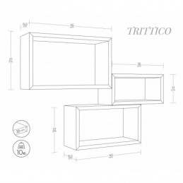 Dimensioni: un modulo 45 × 27 × P 15,5 cm, un modulo 40 × 22 × P 15,5 cm, un modulo 35 × 17 × P 15,5 cm.
