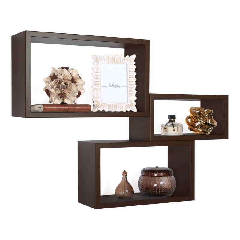Set di 3 Mensole da Muro, Libreria Sospesa, Libreria Parete, Scaffale Parete, Wengè, 45x27 p15,5 cm, 40x22 p15,5 cm e 35x17 p15,5 cm - Trittico