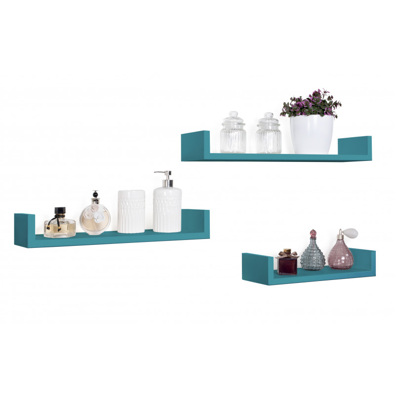 Tipologia: set 4 mensole/pensili da parete Dimensioni: 1) 75 × 30 × P 15,5 cm; 2) 60 × 25 × P 15,5 cm; 3–4) 25 × 15 × P 15,5 cm Materiale: fibra di legno con finitura rivestita Finitura/colore: Blu Baltico Spessore pannelli: 18 mm Fissaggio: a scomparsa (tasselli non inclusi; consigliati 4 kit) Portata massima: 10 kg per mensola Stato consegna: già...