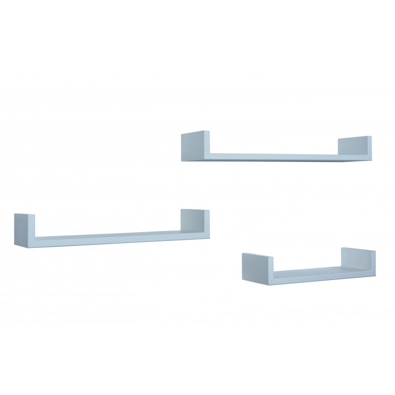 Tipologia: set 4 mensole/pensili da parete Dimensioni: 1) 75 × 30 × P 15,5 cm; 2) 60 × 25 × P 15,5 cm; 3–4) 25 × 15 × P 15,5 cm Materiale: fibra di legno con finitura rivestita Finitura/colore: Blu Baltico Spessore pannelli: 18 mm Fissaggio: a scomparsa (tasselli non inclusi; consigliati 4 kit) Portata massima: 10 kg per mensola Stato consegna: già...