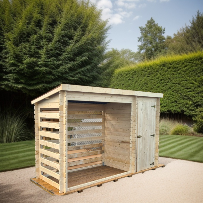 Materiale: pino silvestre trattato in autoclaveColore: legno naturale non verniciatoStruttura: montanti in legno premontatiCopertura: tetto bitumatoDimensioni esterne: 188 x 86 x 187/163 cm (L x P x H)Superficie consigliata: 180 x 64 cm (1,15 m²)Capacità: fino a 2 steri di legnaMontaggio: su lambourde o base in cementoCertificazione: FSCGaranzia: 5 anni...