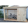 Materiale: legno massiccio da lasurareStruttura: madriers spessore 20 mmCopertura: pannelli OSB + carta bitumataColore: legno naturale grezzoDimensioni esterne: 236 x 119 x 167 cm (L x P x H)Base al suolo: 226 x 112 cm (2,53 m²)Base consigliata: 308,5 x 103,5 cm (3,19 m²)Altezza pareti: 1,54 mAltezza colmo: 1,67 mCapacità: 4 steri di legnaFornitura: kit...