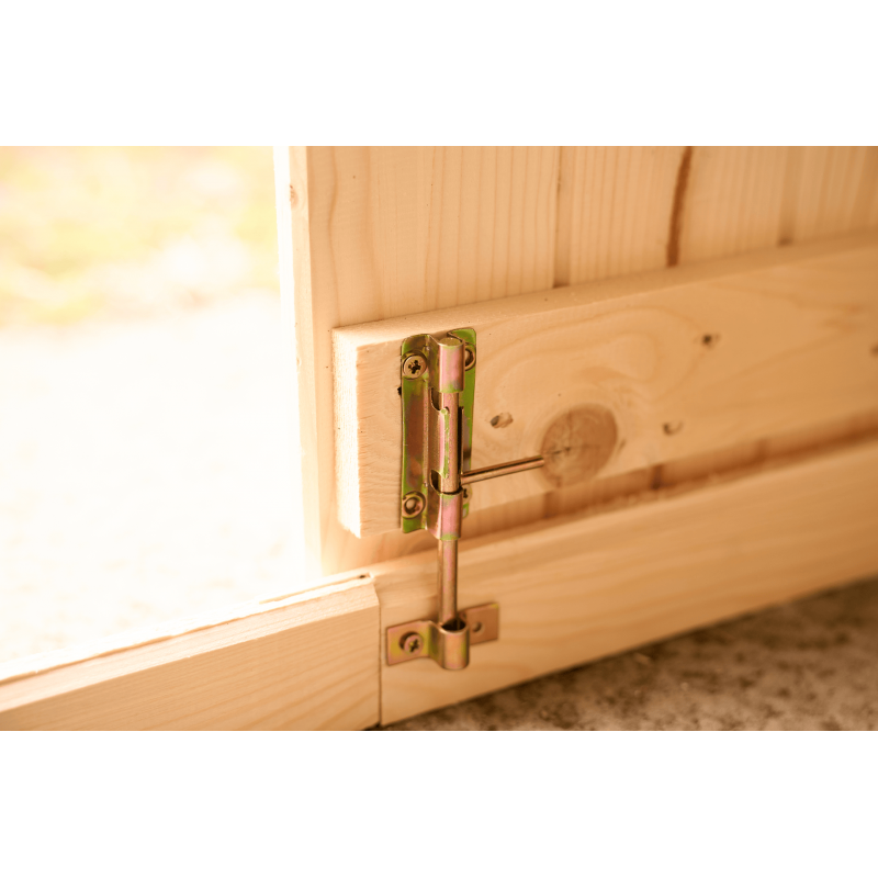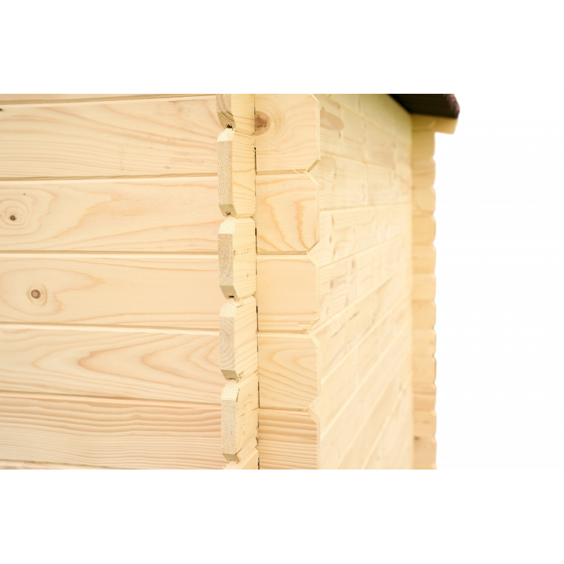 Materiale: abete rosso massello non trattato (Picea – fam. Pinaceae)Colore: legno naturalePareti: tavole da 28 mm a incastro chaletBase a terra: 200 x 200 cm (4,28 m²)Superficie utile interna: 180 x 180 cm (3,24 m²)Dimensioni totali esterne: 210 x 204 cmAltezza parete: 1,71 mAltezza colmo: 1,97 mSporgenza tetto: 7 cm fronte e retroPorta: singola semi...