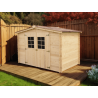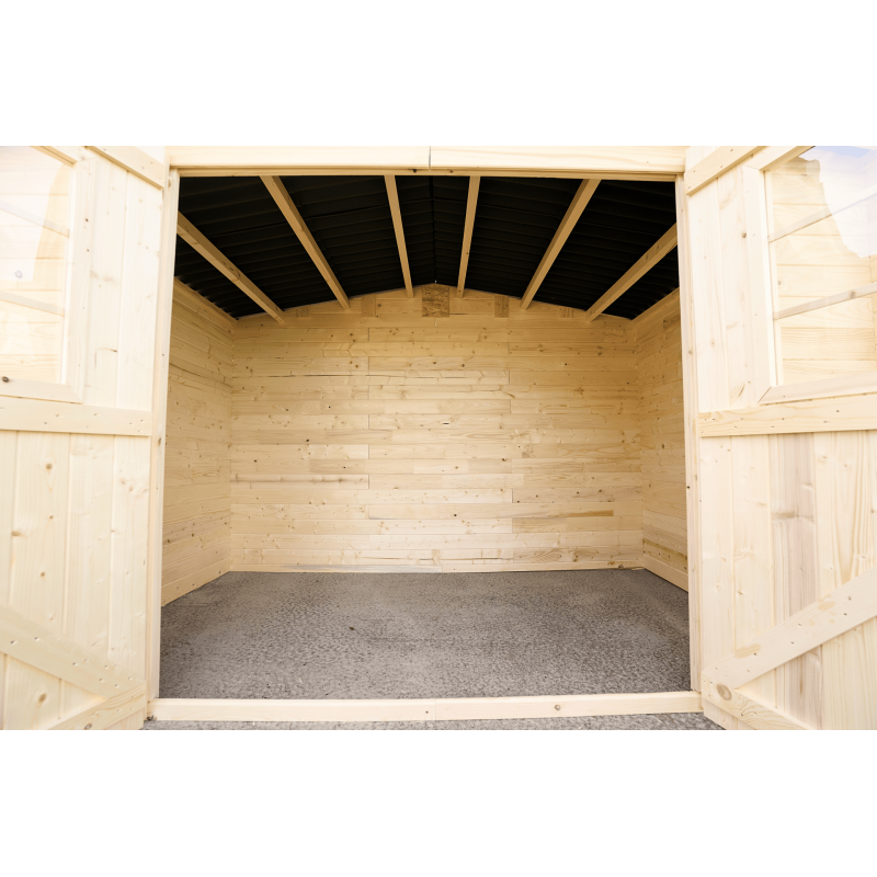 Materiale: picea (fam. Pinaceae) massello non trattatoColore: legno naturaleTrattamento: da effettuare con impregnante, interno ed esterno, subito dopo il montaggioPareti: tavolame scanalato da 20 mm con incastro chaletPavimento: non inclusoBase a terra: 195 x 195 cm (3,80 m²)Superficie utile interna: 175 x 175 cm (3,08 m²)Dimensioni totali esterne: 205 x...