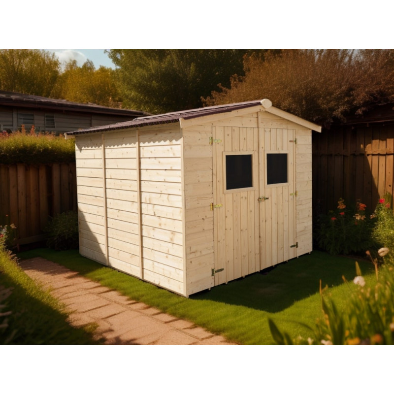 Materiale: abete rosso massello non trattato (Picea – fam. Pinaceae)Colore: legno naturalePareti: tavole da 28 mm a incastro chaletBase a terra: 200 x 200 cm (4,28 m²)Superficie utile interna: 180 x 180 cm (3,24 m²)Dimensioni totali esterne: 210 x 204 cmAltezza parete: 1,71 mAltezza colmo: 1,97 mSporgenza tetto: 7 cm fronte e retroPorta: singola semi...