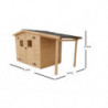 Materiale: abete rosso massiccio (Picea – fam. Pinaceae) non trattatoColore: legno naturalePareti: tavolame scanalato con linguette, spessore 20 mm, taglio chaletBase a terra: 300 x 184 cm (5,83 m²)Superficie utile interna: 280 x 164 cm (4,59 m²)Dimensioni esterne totali: 310 x 188 cmAltezza parete: 1,71 mAltezza colmo: 1,97 mSporgenza tetto: anteriore e...