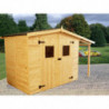Materiale: abete rosso massiccio non trattatoColore: legno naturaleTrattamento: da effettuare con vernice protettiva antimuffa e antitarmePareti: pannelli preassemblati da 16 mmPavimento: truciolare da 12 mmBase a terra: 120 x 120 cm (1,44 m²)Dimensioni utili interne: 116 x 116 cm (1,35 m²)Tetto: lastre bituminose ondulate su doppia faldaAltezza parete:...