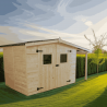 Materiale: picea (fam. Pinaceae) massello non trattatoColore: legno naturaleTrattamento: da effettuare con impregnante, interno ed esterno, subito dopo il montaggioPareti: tavolame scanalato da 20 mm con incastro chaletPavimento: non inclusoBase a terra: 195 x 195 cm (3,80 m²)Superficie utile interna: 175 x 175 cm (3,08 m²)Dimensioni totali esterne: 205 x...