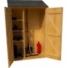 Materiale: abete rosso massiccio non trattatoColore: legno naturaleTrattamento: da effettuare con vernice protettiva antimuffa e antitarmePareti: pannelli preassemblati da 16 mmPavimento: truciolare da 12 mmBase a terra: 120 x 120 cm (1,44 m²)Dimensioni utili interne: 116 x 116 cm (1,35 m²)Tetto: lastre bituminose ondulate su doppia faldaAltezza parete:...