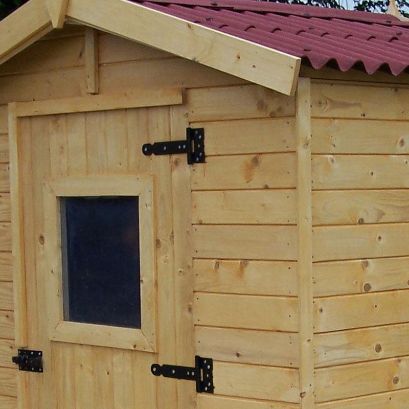 Materiale: abete rosso massiccio non trattatoColore: legno naturaleTrattamento: da effettuare con vernice antimuffa e antitarmePareti: pannelli preassemblati in abete piallato con incastro maschio/femmina, spessore 16 mm, telaio 25 x 25 mmPavimento: truciolare trattato da 12 mm su 5 travetti in legno massello 25 x 40 mmBase a terra: 240 x 240 cm (5,76...