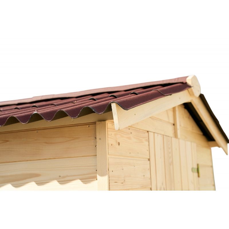 Materiale: abete rosso massello non trattato (Picea – fam. Pinaceae)Colore: legno naturalePareti: tavole da 28 mm a incastro chaletBase a terra: 200 x 200 cm (4,28 m²)Superficie utile interna: 180 x 180 cm (3,24 m²)Dimensioni totali esterne: 210 x 204 cmAltezza parete: 1,71 mAltezza colmo: 1,97 mSporgenza tetto: 7 cm fronte e retroPorta: singola semi...