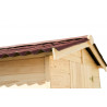 Materiale: abete rosso massiccio (Picea – fam. Pinaceae) non trattatoColore: legno naturalePareti: tavolame scanalato con linguette, spessore 20 mm, taglio chaletBase a terra: 300 x 184 cm (5,83 m²)Superficie utile interna: 280 x 164 cm (4,59 m²)Dimensioni esterne totali: 310 x 188 cmAltezza parete: 1,71 mAltezza colmo: 1,97 mSporgenza tetto: anteriore e...