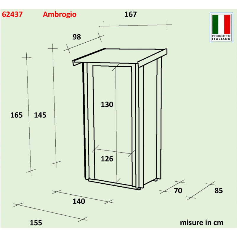 Codice articolo: 62437Modello: AmbrogioMateriale: Legno di abete naturale non trattatoSpessore pareti: 16 mmTipologia costruttiva: Ad incastroDimensioni esterne: 155x85 cmDimensioni interne: 140x70 cmSuperficie interna: 0,98 m²Altezza minima: 145 cmAltezza massima: 165 cmLunghezza gronda: 167 cmSviluppo falda: 98 cmSuperficie tetto: 1,64 m²Pavimento: OSB...