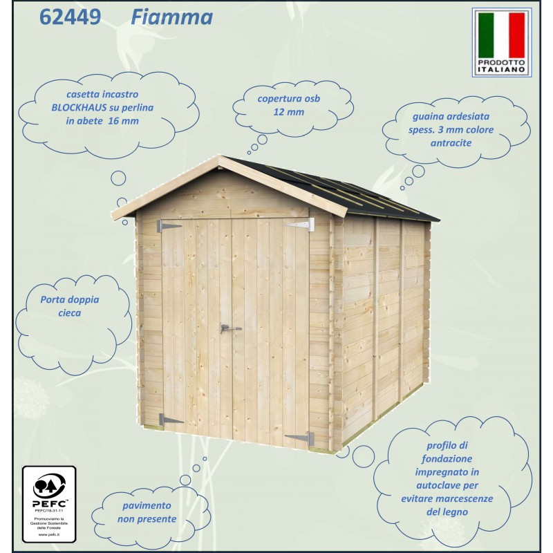 Codice articolo: 62077Modello: GaetaMateriale: Legno di abete naturale non trattatoSpessore pareti: 16 mmTipologia costruttiva: Ad incastroDimensioni esterne: 178x218 cmDimensioni interne: 163x203 cmSuperficie interna: 3,31 m²Altezza minima: 170 cmAltezza massima: 205 cmLunghezza gronda: 230 cmSviluppo falda: 106 cmSuperficie tetto: 4,87 m²Pavimento: OSB...