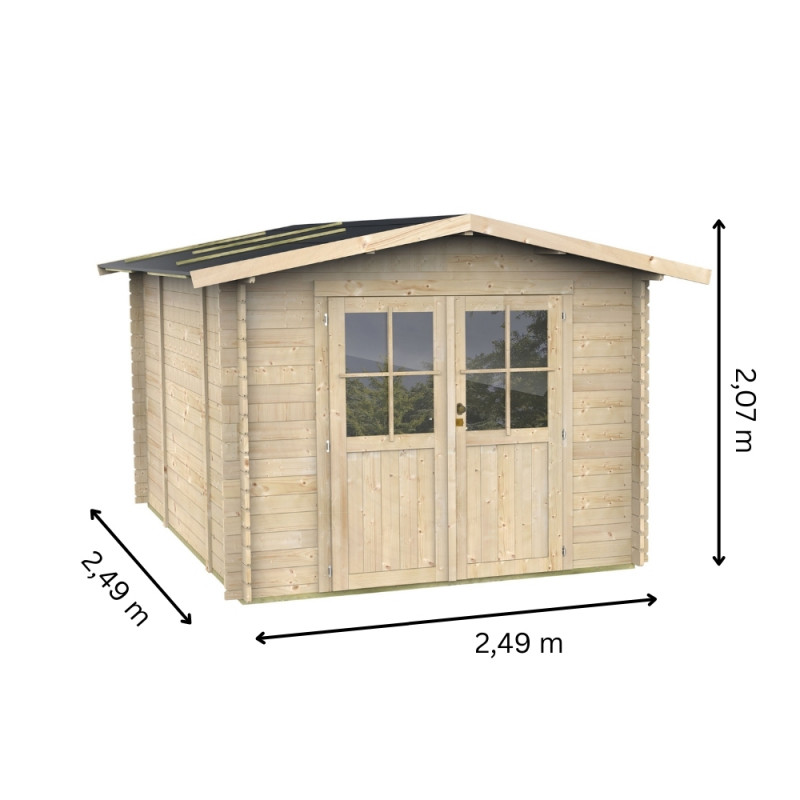 Codice articolo: 62179Modello: HobbyMateriale: Legno di abete naturale non trattatoSpessore pareti: 19 mmTipologia costruttiva: Ad incastroDimensioni esterne: 198x198 cmDimensioni interne: 176x176 cmSuperficie interna: 3,10 m²Altezza minima: 183 cmAltezza massima: 215 cmLunghezza gronda: 198 cmSviluppo falda: 123 cmSuperficie tetto: 4,87 m²Pavimento: OSB...