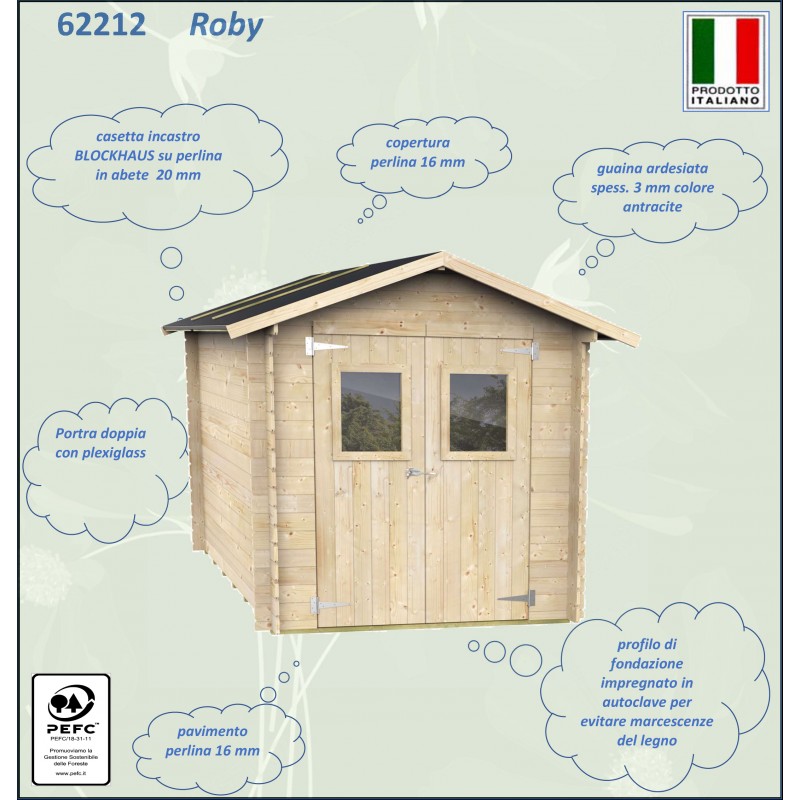 Codice articolo: 62077Modello: GaetaMateriale: Legno di abete naturale non trattatoSpessore pareti: 16 mmTipologia costruttiva: Ad incastroDimensioni esterne: 178x218 cmDimensioni interne: 163x203 cmSuperficie interna: 3,31 m²Altezza minima: 170 cmAltezza massima: 205 cmLunghezza gronda: 230 cmSviluppo falda: 106 cmSuperficie tetto: 4,87 m²Pavimento: OSB...