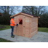 Materiale: picea (fam. Pinaceae) massello non trattatoColore: legno naturaleTrattamento: da effettuare con impregnante, interno ed esterno, subito dopo il montaggioPareti: tavolame scanalato da 20 mm con incastro chaletPavimento: non inclusoBase a terra: 195 x 195 cm (3,80 m²)Superficie utile interna: 175 x 175 cm (3,08 m²)Dimensioni totali esterne: 205 x...