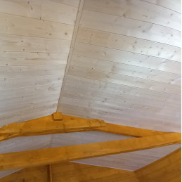 Materiale: abete rosso massello non trattato (Picea – fam. Pinaceae)Colore: legno naturalePareti: tavole da 28 mm a incastro chaletBase a terra: 200 x 200 cm (4,28 m²)Superficie utile interna: 180 x 180 cm (3,24 m²)Dimensioni totali esterne: 210 x 204 cmAltezza parete: 1,71 mAltezza colmo: 1,97 mSporgenza tetto: 7 cm fronte e retroPorta: singola semi...