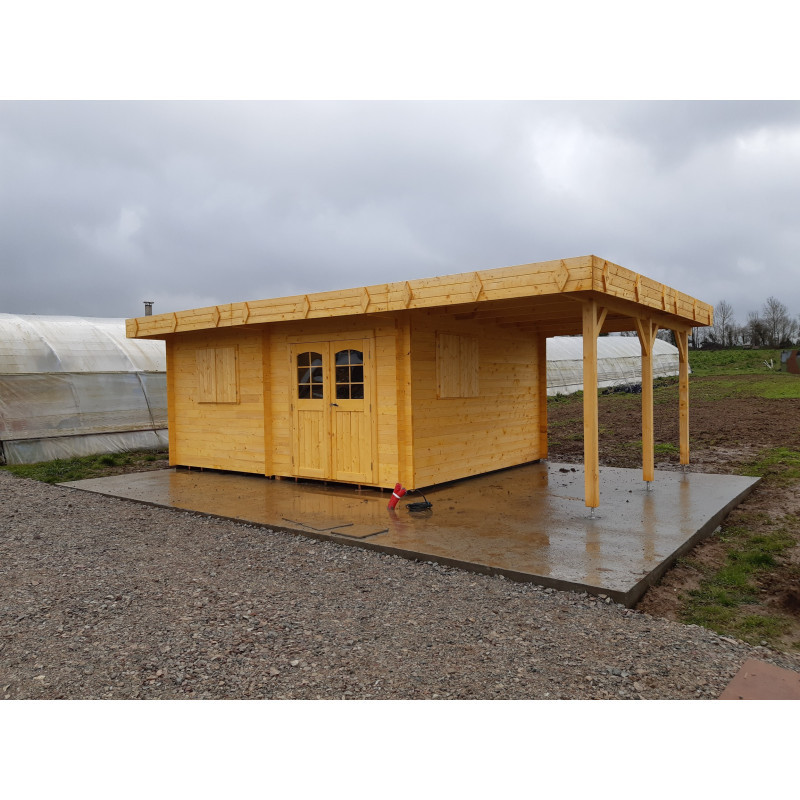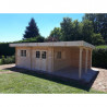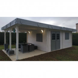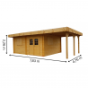 Materiale: abete rosso massiccio (Picea – fam. Pinaceae) non trattatoColore: legno naturalePareti: tavolame scanalato con linguette, spessore 20 mm, taglio chaletBase a terra: 300 x 184 cm (5,83 m²)Superficie utile interna: 280 x 164 cm (4,59 m²)Dimensioni esterne totali: 310 x 188 cmAltezza parete: 1,71 mAltezza colmo: 1,97 mSporgenza tetto: anteriore e...