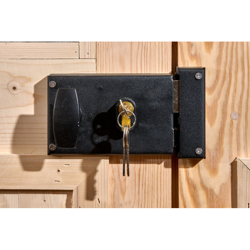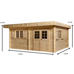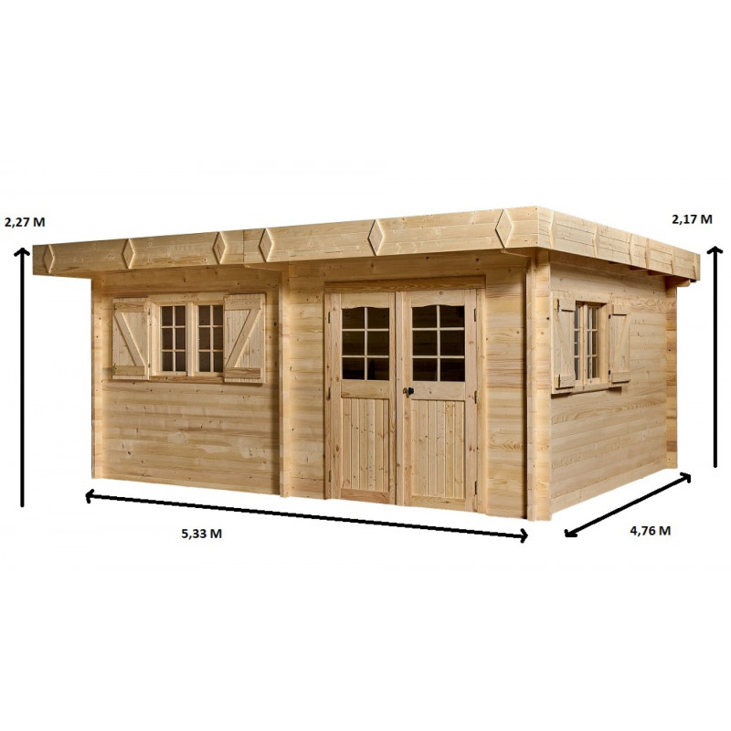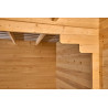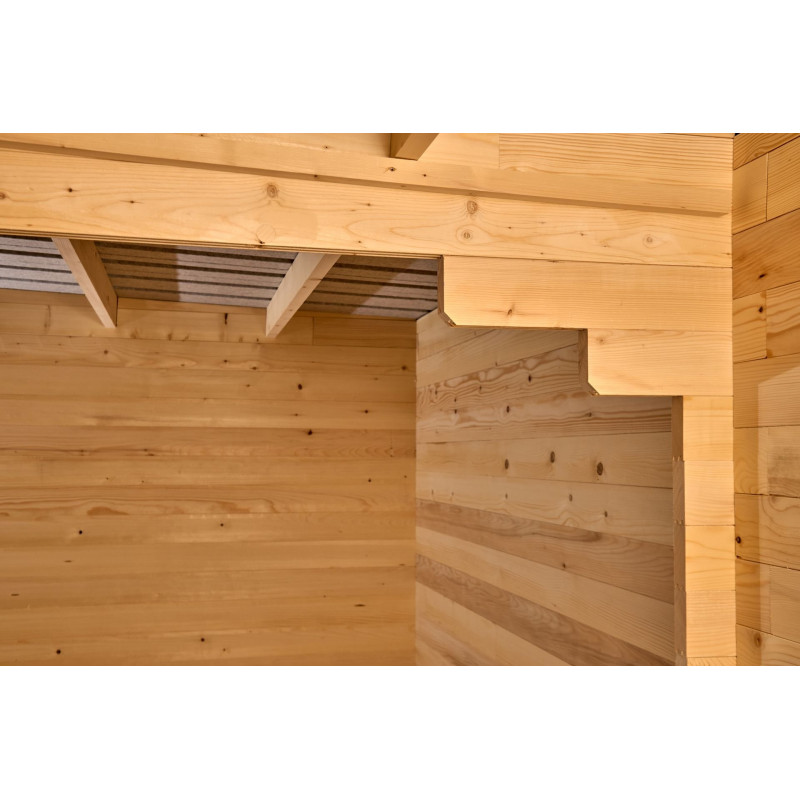 Materiale: abete rosso massiccio (Picea – fam. Pinaceae) non trattatoColore: legno naturalePareti: tavolame scanalato con linguette, spessore 20 mm, taglio chaletBase a terra: 300 x 184 cm (5,83 m²)Superficie utile interna: 280 x 164 cm (4,59 m²)Dimensioni esterne totali: 310 x 188 cmAltezza parete: 1,71 mAltezza colmo: 1,97 mSporgenza tetto: anteriore e...