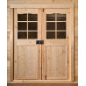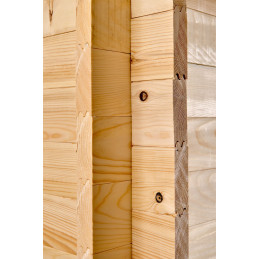 Materiale: picea (fam. Pinaceae) massello non trattatoColore: legno naturaleTrattamento: da effettuare con impregnante, interno ed esterno, subito dopo il montaggioPareti: tavolame scanalato da 20 mm con incastro chaletPavimento: non inclusoBase a terra: 195 x 195 cm (3,80 m²)Superficie utile interna: 175 x 175 cm (3,08 m²)Dimensioni totali esterne: 205 x...