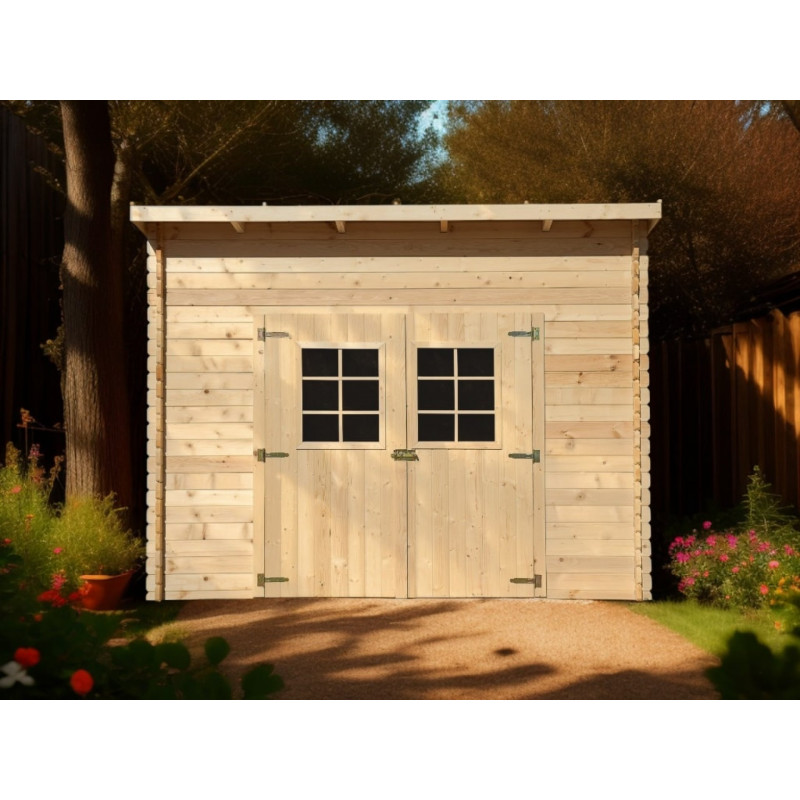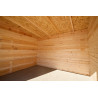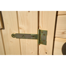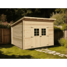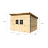 Materiale: abete rosso massiccio (Picea – fam. Pinaceae) non trattatoColore: legno naturalePareti: tavolame scanalato con linguette, spessore 20 mm, taglio chaletBase a terra: 300 x 184 cm (5,83 m²)Superficie utile interna: 280 x 164 cm (4,59 m²)Dimensioni esterne totali: 310 x 188 cmAltezza parete: 1,71 mAltezza colmo: 1,97 mSporgenza tetto: anteriore e...