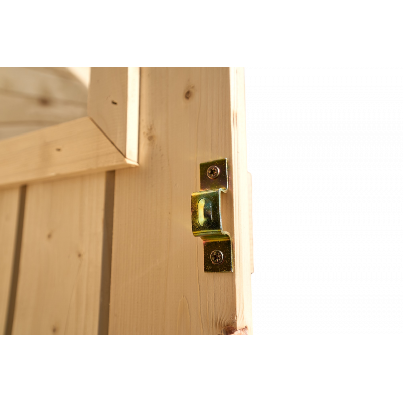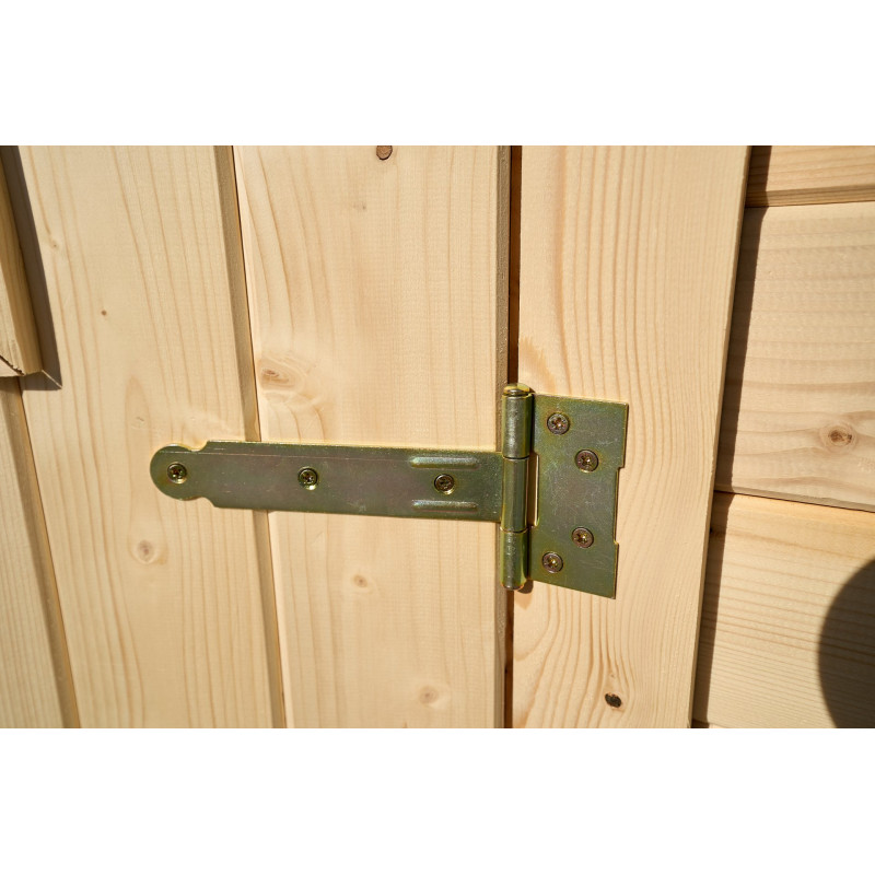 Materiale: picea (fam. Pinaceae) massello non trattatoColore: legno naturaleTrattamento: da effettuare con impregnante, interno ed esterno, subito dopo il montaggioPareti: tavolame scanalato da 20 mm con incastro chaletPavimento: non inclusoBase a terra: 195 x 195 cm (3,80 m²)Superficie utile interna: 175 x 175 cm (3,08 m²)Dimensioni totali esterne: 205 x...