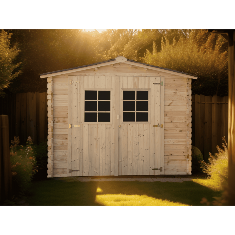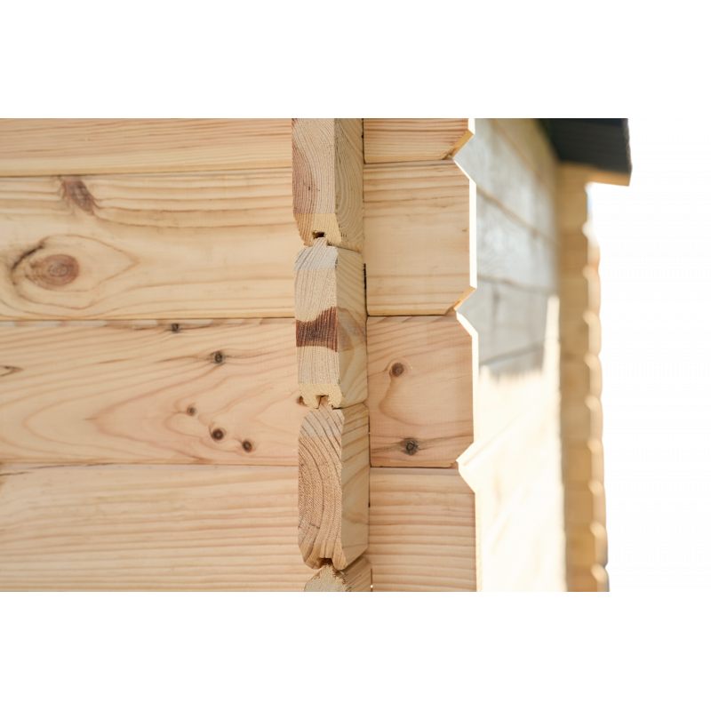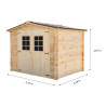 Materiale: abete rosso massello non trattato (Picea – fam. Pinaceae)Colore: legno naturalePareti: tavole da 28 mm a incastro chaletBase a terra: 200 x 200 cm (4,28 m²)Superficie utile interna: 180 x 180 cm (3,24 m²)Dimensioni totali esterne: 210 x 204 cmAltezza parete: 1,71 mAltezza colmo: 1,97 mSporgenza tetto: 7 cm fronte e retroPorta: singola semi...