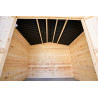 Materiale: abete rosso massiccio non trattatoColore: legno naturaleTrattamento: da effettuare con vernice antimuffa e antitarmePareti: pannelli preassemblati in abete piallato con incastro maschio/femmina, spessore 16 mm, telaio 25 x 25 mmPavimento: truciolare trattato da 12 mm su 5 travetti in legno massello 25 x 40 mmBase a terra: 240 x 240 cm (5,76...