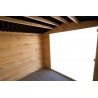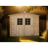 Materiale: abete rosso massiccio (Picea – fam. Pinaceae) non trattatoColore: legno naturalePareti: tavolame scanalato con linguette, spessore 20 mm, taglio chaletBase a terra: 300 x 184 cm (5,83 m²)Superficie utile interna: 280 x 164 cm (4,59 m²)Dimensioni esterne totali: 310 x 188 cmAltezza parete: 1,71 mAltezza colmo: 1,97 mSporgenza tetto: anteriore e...