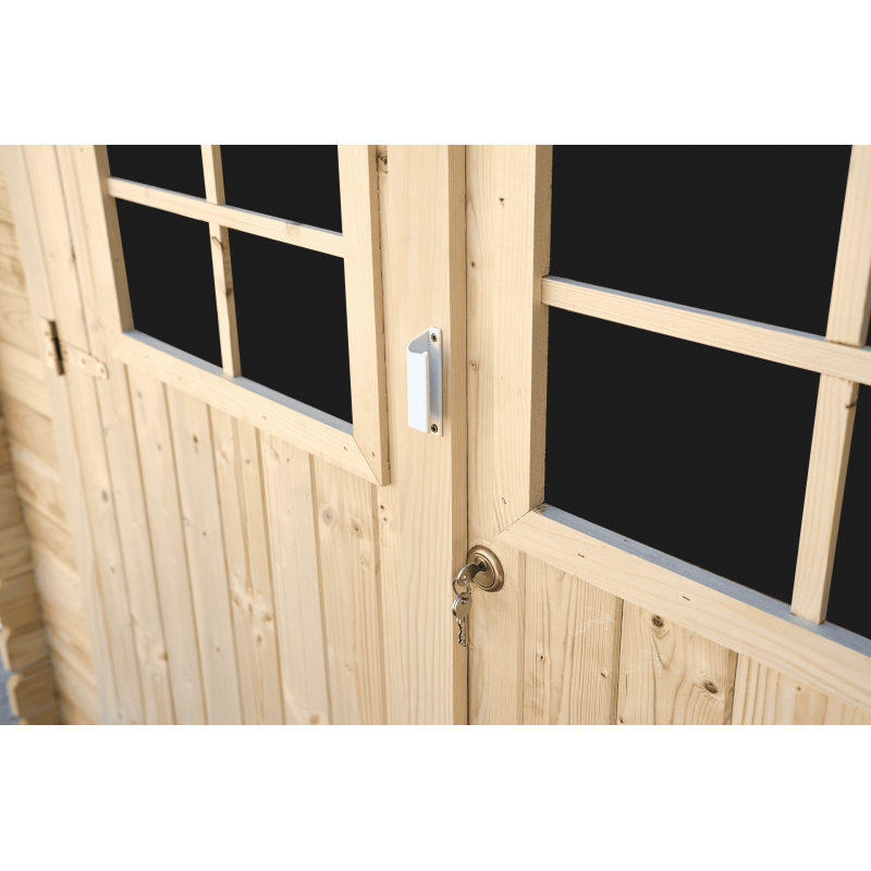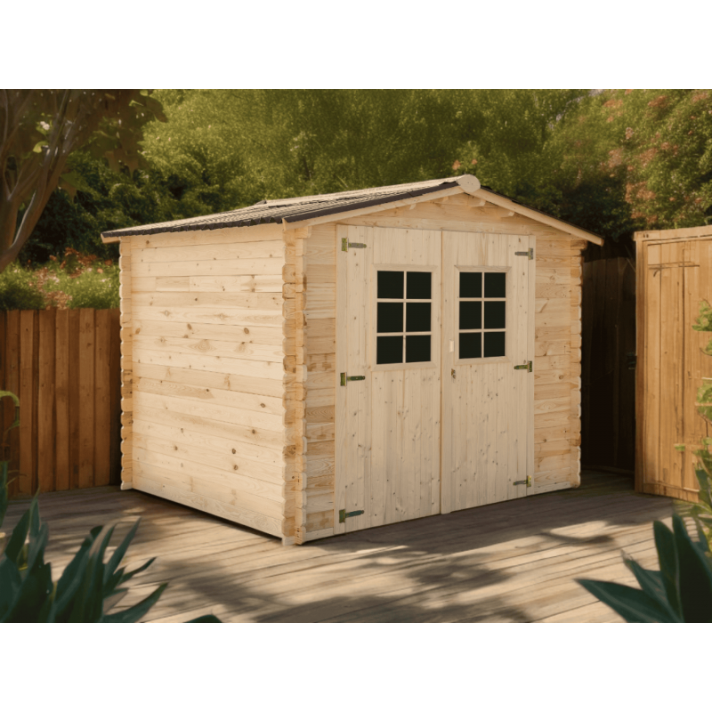 Materiale: picea (fam. Pinaceae) massello non trattatoColore: legno naturaleTrattamento: da effettuare con impregnante, interno ed esterno, subito dopo il montaggioPareti: tavolame scanalato da 20 mm con incastro chaletPavimento: non inclusoBase a terra: 195 x 195 cm (3,80 m²)Superficie utile interna: 175 x 175 cm (3,08 m²)Dimensioni totali esterne: 205 x...