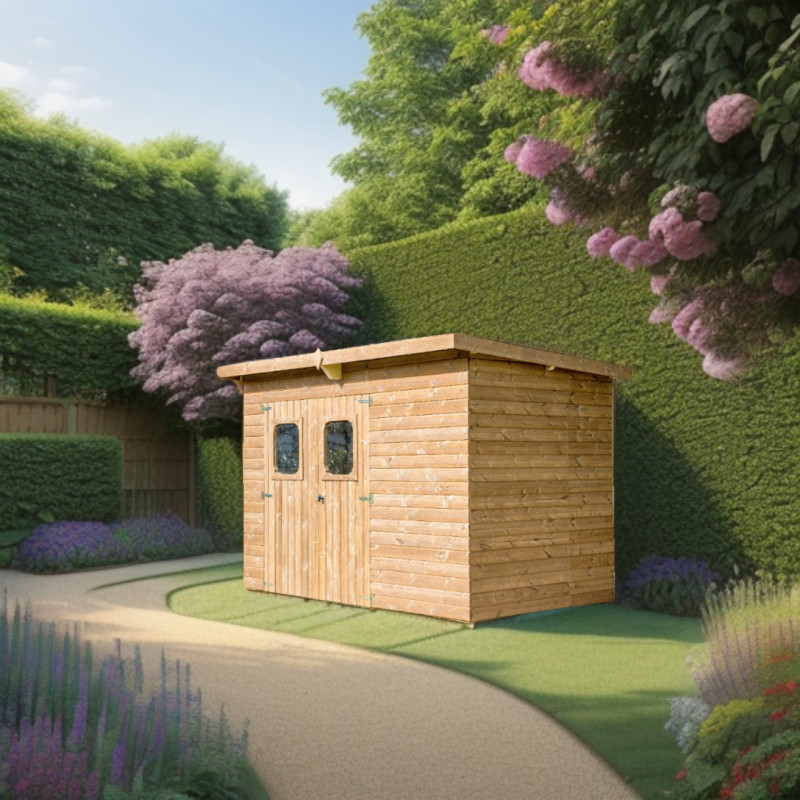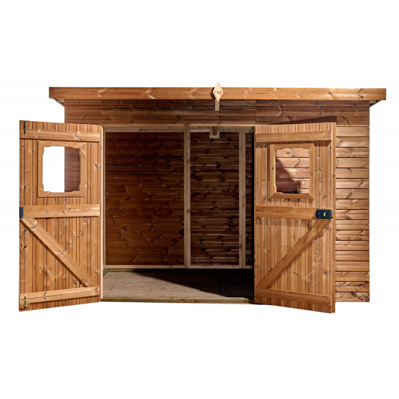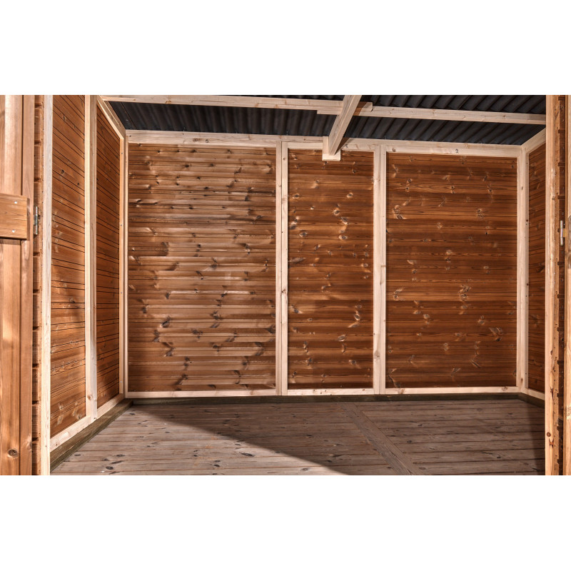 Materiale: Legno d’epicéa massello trattato termicamente a 215°C – THT (classe II)Trattamento: Termico ad alta temperatura – senza prodotti sinteticiColore: Brun doré naturaleStruttura: Pannelli pre-assemblati, spessore 19 mm, su telaio 45 x 30 mmSuperficie utile: 306 x 170 cm – 5,20 m²Superficie a terra: 316 x 170 cm – 5,69 m²Superficie tetto: 333 x 220...