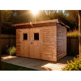 Materiale: abete termo-trattato a 215°C, naturale e senza prodotti chimiciColore: bruno-doratoPareti: pannelli preassemblati da 19 mm con incastro scanalato su telaio 45x30 mmBase a terra: 120 x 60 cm (0,72 m²)Superficie utile interna: 116 x 56 cm (0,65 m²)Dimensioni totali: 124 x 67 cmAltezza pareti: 1,72 mAltezza colmo: 1,95 mTetto: doppia falda con...