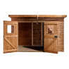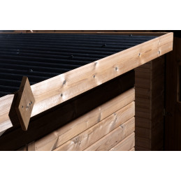 Materiale: Legno di epicéa massello THT (trattamento termico a 215°C senza sostanze chimiche)Colore: Naturale brun doréStruttura: Pannelli pre-assemblati su telaio da 45 x 30 mmSpessore pareti: 19 mmDimensioni a terra: 120 x 119,8 cm – 1,43 m²Superficie utile interna: 116 x 116 cm – 1,35 m²Superficie tetto: 135 x 145 cm – 1,43 m²Base per montaggio: 116 x...