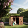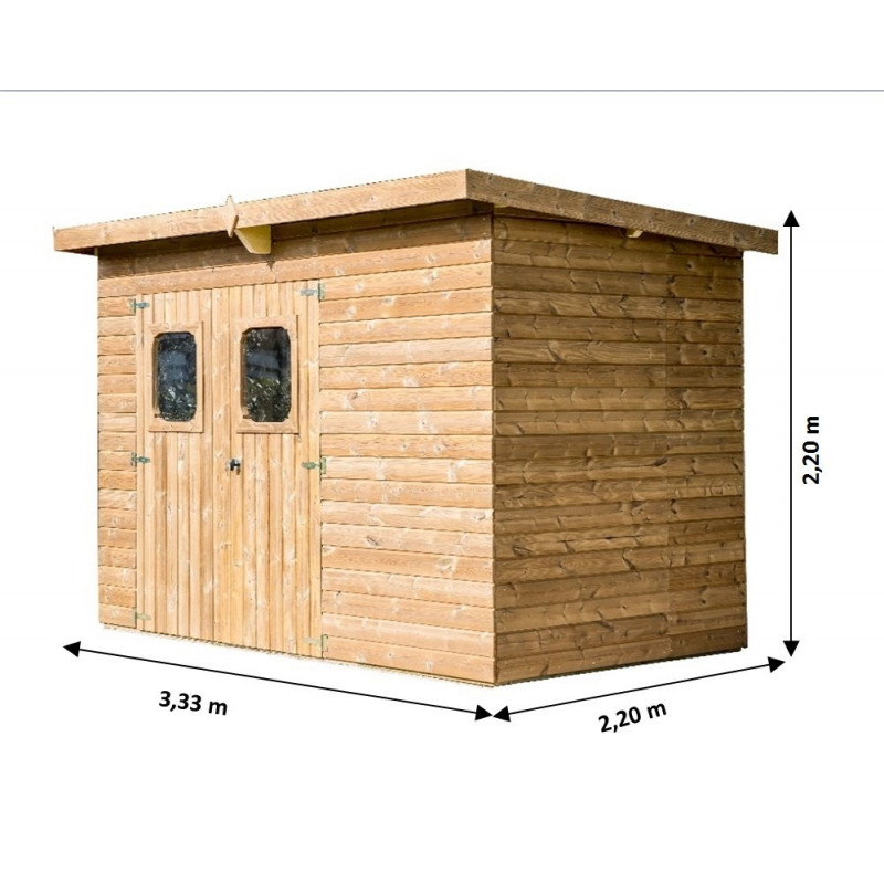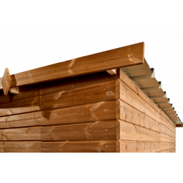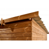 Materiale: abete termo-trattato a 215°C, naturale e senza prodotti chimiciColore: bruno-doratoPareti: pannelli preassemblati da 19 mm con incastro scanalato su telaio 45x30 mmBase a terra: 120 x 60 cm (0,72 m²)Superficie utile interna: 116 x 56 cm (0,65 m²)Dimensioni totali: 124 x 67 cmAltezza pareti: 1,72 mAltezza colmo: 1,95 mTetto: doppia falda con...