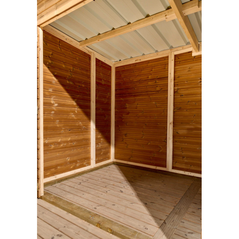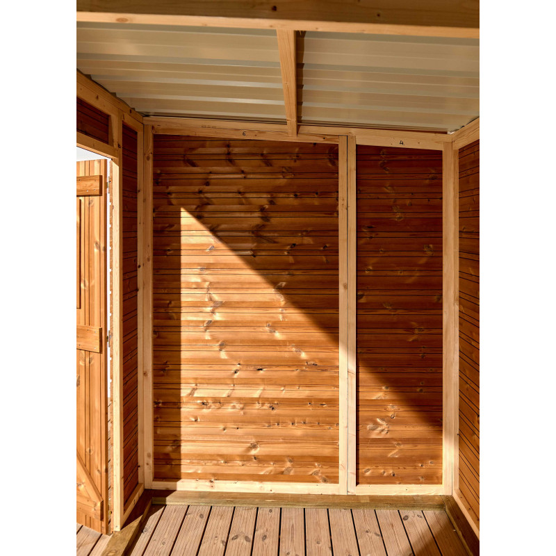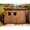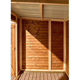 Materiale: Legno di epicéa massello THT (trattamento termico a 215°C senza sostanze chimiche)Colore: Naturale brun doréStruttura: Pannelli pre-assemblati su telaio da 45 x 30 mmSpessore pareti: 19 mmDimensioni a terra: 120 x 119,8 cm – 1,43 m²Superficie utile interna: 116 x 116 cm – 1,35 m²Superficie tetto: 135 x 145 cm – 1,43 m²Base per montaggio: 116 x...