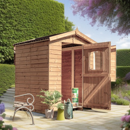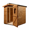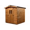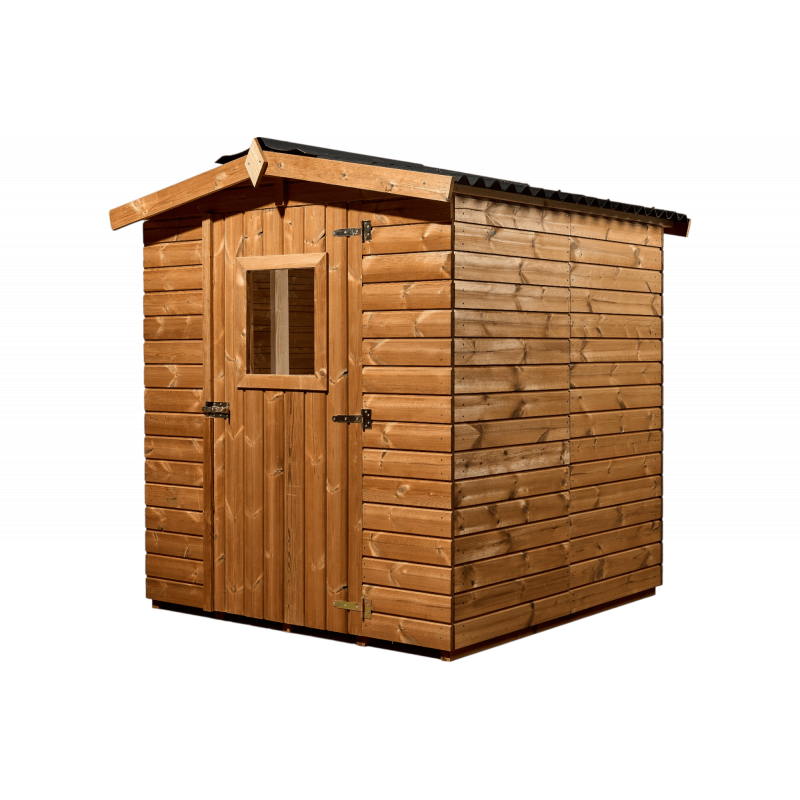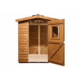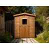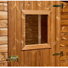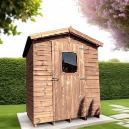 Materiale: abete termo-trattato a 215°C, naturale e senza prodotti chimiciColore: bruno-doratoPareti: pannelli preassemblati da 19 mm con incastro scanalato su telaio 45x30 mmBase a terra: 120 x 60 cm (0,72 m²)Superficie utile interna: 116 x 56 cm (0,65 m²)Dimensioni totali: 124 x 67 cmAltezza pareti: 1,72 mAltezza colmo: 1,95 mTetto: doppia falda con...