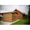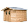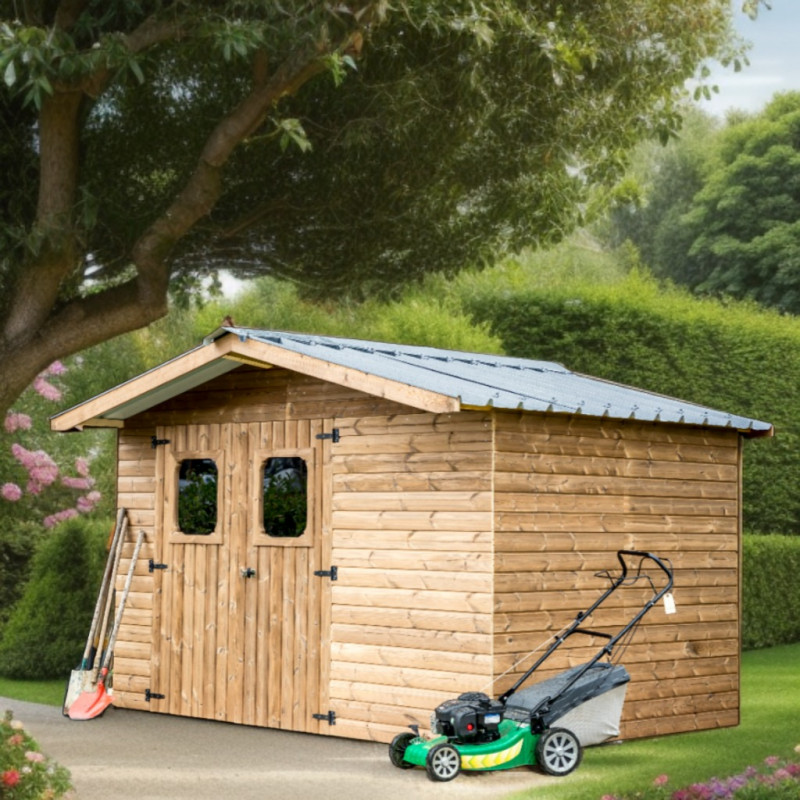 Materiale: Legno d’epicéa massello trattato termicamente a 215°C – THT (classe II)Trattamento: Termico ad alta temperatura – senza prodotti sinteticiColore: Brun doré naturaleStruttura: Pannelli pre-assemblati, spessore 19 mm, su telaio 45 x 30 mmSuperficie utile: 306 x 170 cm – 5,20 m²Superficie a terra: 316 x 170 cm – 5,69 m²Superficie tetto: 333 x 220...