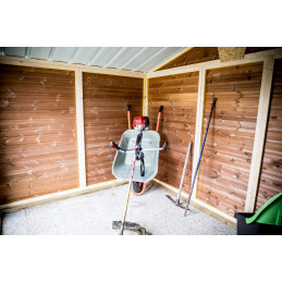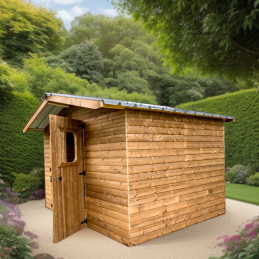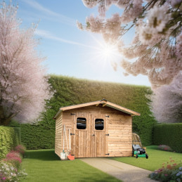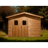 Materiale: abete termo-trattato a 215°C, naturale e senza prodotti chimiciColore: bruno-doratoPareti: pannelli preassemblati da 19 mm con incastro scanalato su telaio 45x30 mmBase a terra: 120 x 60 cm (0,72 m²)Superficie utile interna: 116 x 56 cm (0,65 m²)Dimensioni totali: 124 x 67 cmAltezza pareti: 1,72 mAltezza colmo: 1,95 mTetto: doppia falda con...