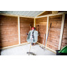 Materiale: Legno di epicéa massello THT (trattamento termico a 215°C senza sostanze chimiche)Colore: Naturale brun doréStruttura: Pannelli pre-assemblati su telaio da 45 x 30 mmSpessore pareti: 19 mmDimensioni a terra: 120 x 119,8 cm – 1,43 m²Superficie utile interna: 116 x 116 cm – 1,35 m²Superficie tetto: 135 x 145 cm – 1,43 m²Base per montaggio: 116 x...