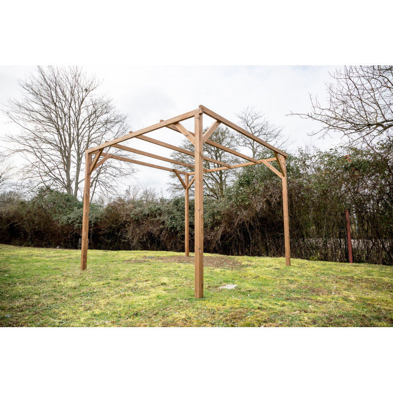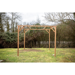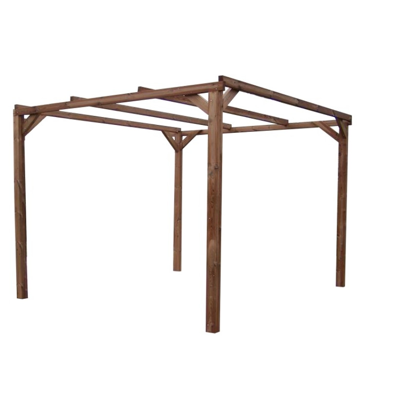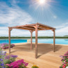 Pali con sezione da 70 x 80 mm e travi di collegamento con interasse di 74 cm, ideale per coperture personalizzabili (teli, cannicciati, piante rampicanti).