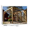 Materiale: Legno lamellare di abete rosso non trattatoDimensioni a terra: 339 x 360 cmSuperficie coperta: 12,2 m²Altezza passaggio: 2,05 mAltezza colmo: 2,17 mDoghe regolabili: su tetto e parete lateraleColore: Legno naturaleCertificazioni: PEFC – legno da foreste sostenibiliOrigine: Prodotto fabbricato in FranciaPeso: 410 kgImballo: Pallet 370 x 120 x 45 cm